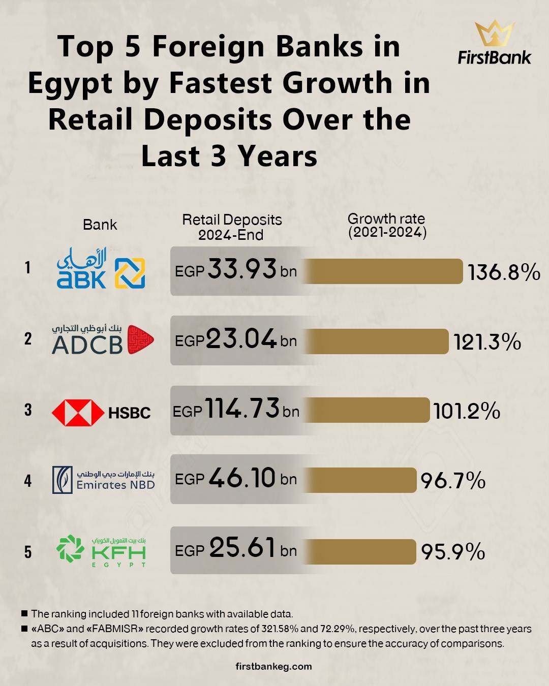 11580 /11580 Top 5 Foreign Banks in Egypt by Fastest Growth in Retail Deposits Over the last 3 years 9/28/2025 11:00:00 AM Share Share