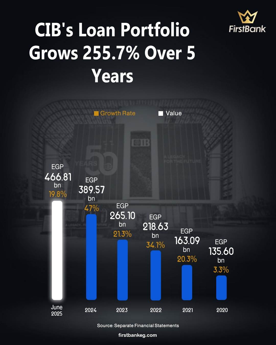 This remarkable achievement reflects a sustained journey of growth and excellence in providing financing to both individuals and corporations, as evidenced by the rise of its corporate loan portfolio to EGP 381.90 bn by the end of June 2025, up from EGP 103.97 bn at the end of 2019, marking a growth rate of 267.3%