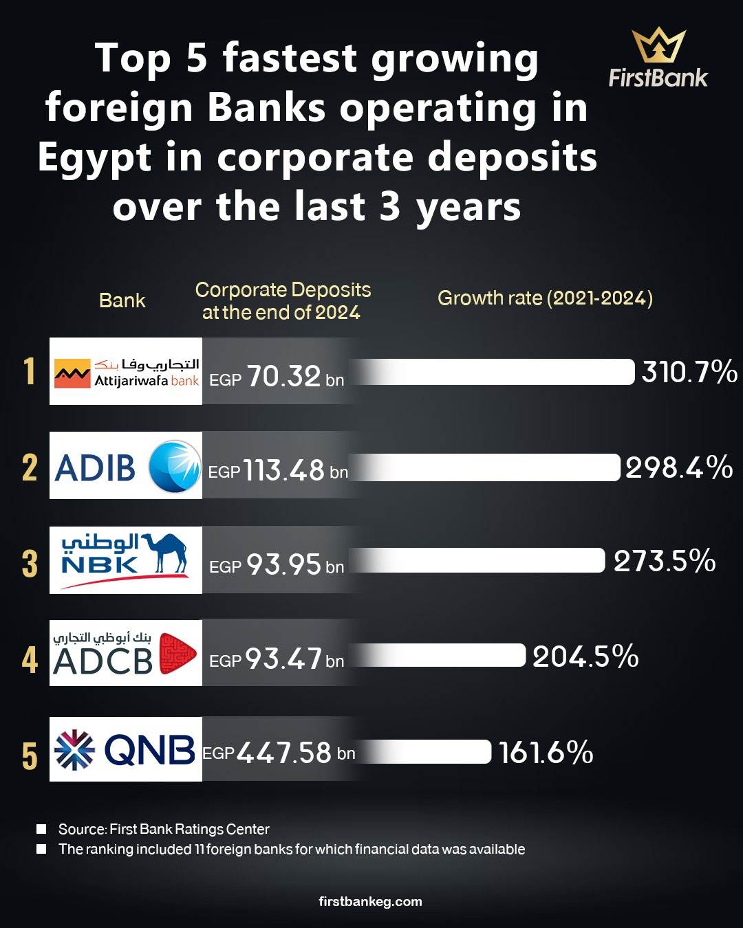 11616 /11616 Top 5 fastest growing foreign Banks operating in Egypt in corporate deposits over the last 3 years First Bank 10/4/2025 10:36:30 PM Share Share