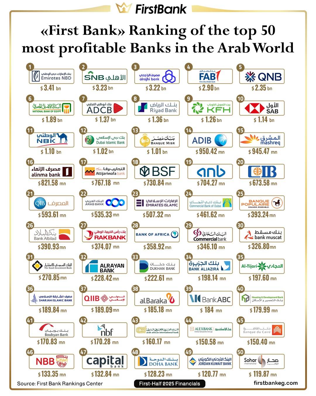 11973 /11973 First Bank Ranking of the Top 50 Most Profitable Banks in the Arab World 12/2/2025 2:32:32 PM Share Share