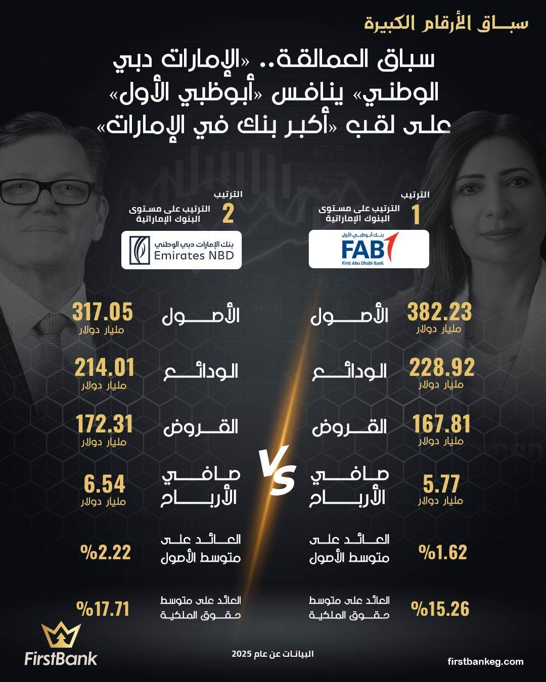 In this context, this episode of «Big Numbers Race» addresses the competition between First Abu Dhabi Bank and Emirates NBD for the title of «Largest Bank in the UAE». The indicators of this race reflect an increasing convergence in the sizes of the main financial portfolios, with the competition gradually shifting from traditional size superiority to a more balanced equation based on growth speed and efficiency in resource utilization.
