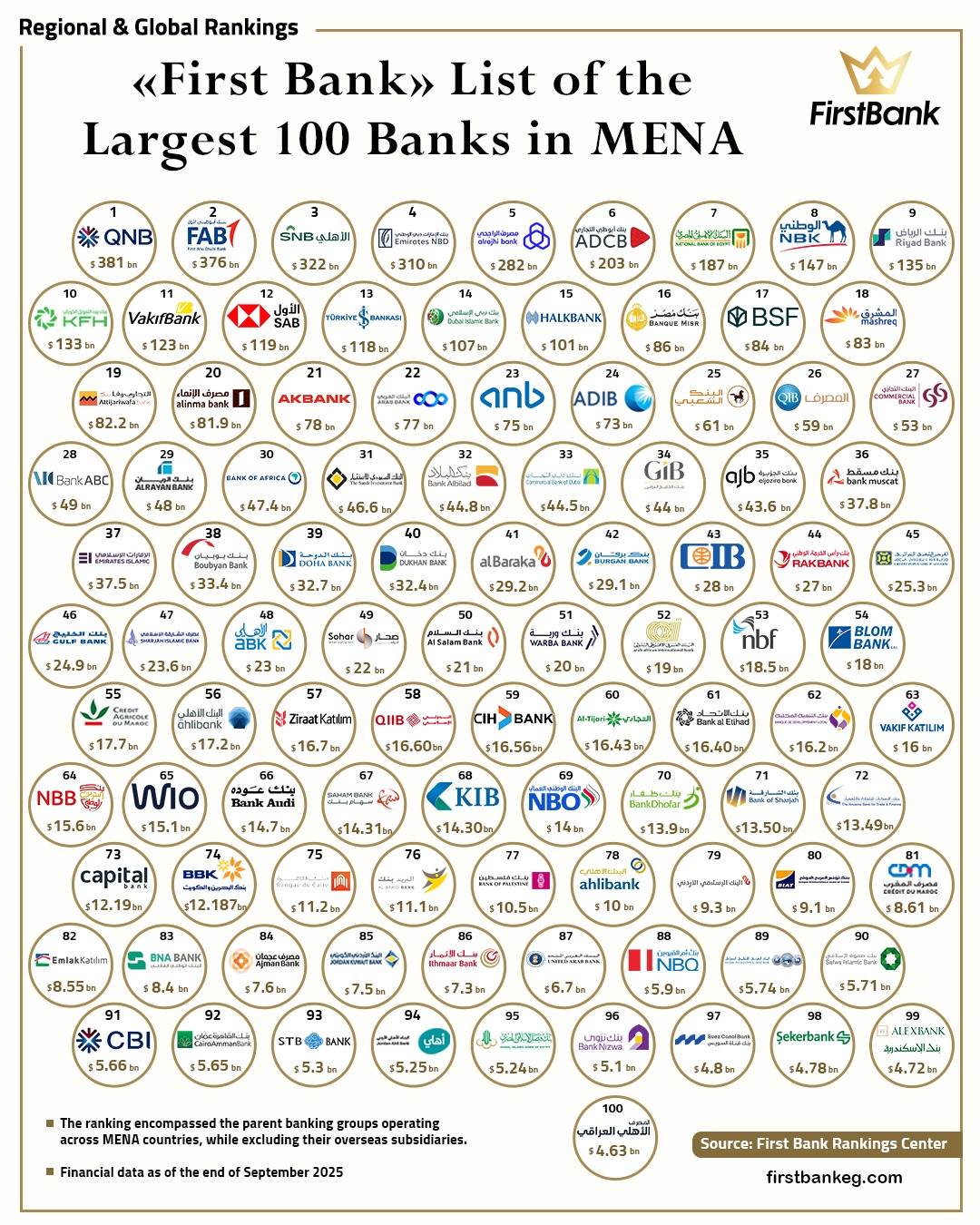 «First Bank» List of the Largest 100 Banks in MENA