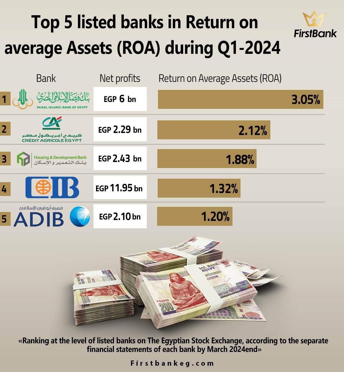 7297 /7297 Top 5 listed banks in Return on average Assets (ROA) during Q1-2024 First Bank 6/12/2024 11:26:00 AM Share Share